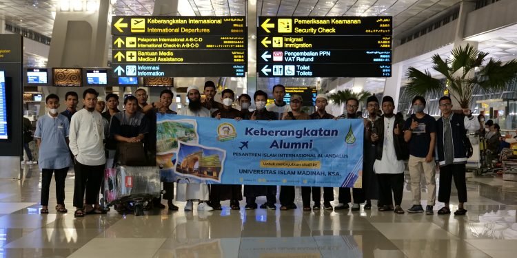 Tangerang — Alumni angkatan pertama Pesantren Islam Internasional Al-Andalus, Muhammad Bimbi Firdaus berangkat ke Arab Saudi untuk melanjutkan pendidikan tingginya di Universitas Islam Madinah (UIM).
