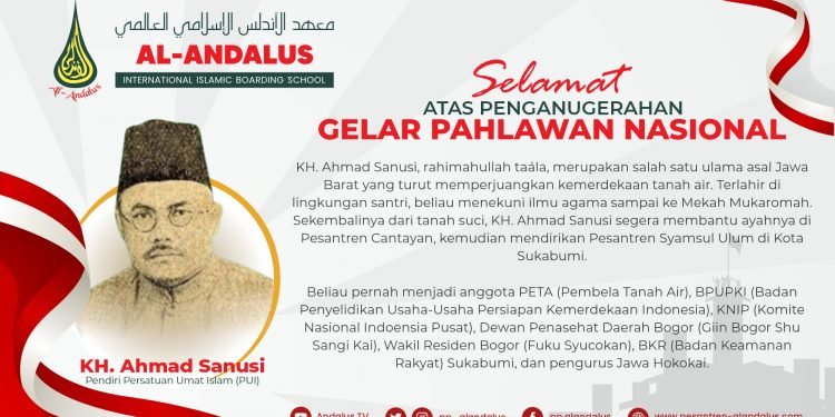 Bogor — Mudir Áam Pesantren Islam Internasional Al-Andalus menyampaikan rasa syukur atas penetapan KH. Ahmad Sanusi, rahimahullah taála, sebagai pahlawan nasional. Ketetapan ini diresmikan oleh Presiden Joko Widodo, pada tanggal 7 November 2022, saat menerima perwakilan keluarga di Istana Negara.