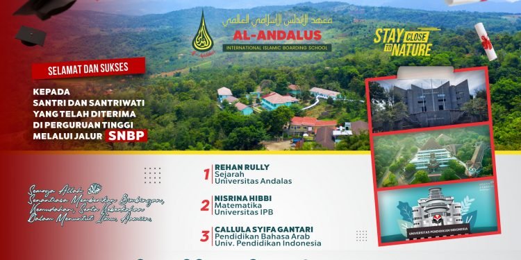 Bogor – Sebanyak tiga orang santri Pesantren Islam Internasional Al-Andalus berhasil diterima di perguruan tinggi negeri (PTN) melalui jalur Seleksi Nasional Berdasarkan Prestasi (SNBP) 2023.
