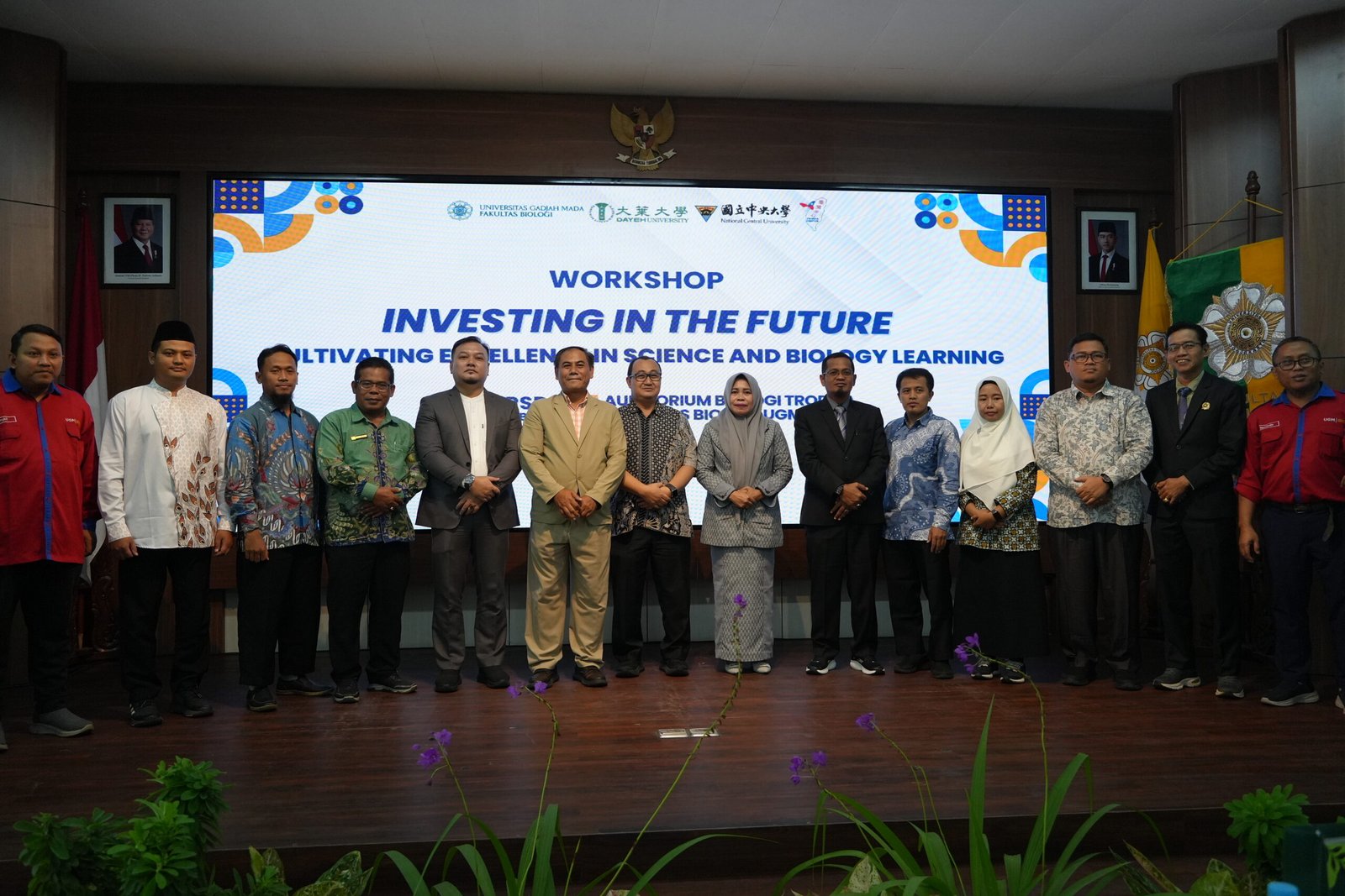 Kepala SMAIT Al-Andalus, Ustaz Arif Nahju Alhuda (ketiga, kiri) saat menghadiri Workshop bertajuk “Investing in the Future: Cultivating Excellence in Science and Biology Learning” di Auditorium Biologi Tropika, Sleman, DIY, Kamis (23/10/2025) sekaligus penandatanganan MoU dalam bidang pendidikan, penelitian dan pengabdian kepada masyarakat antara UGM dan Pesantren Al-Andalus